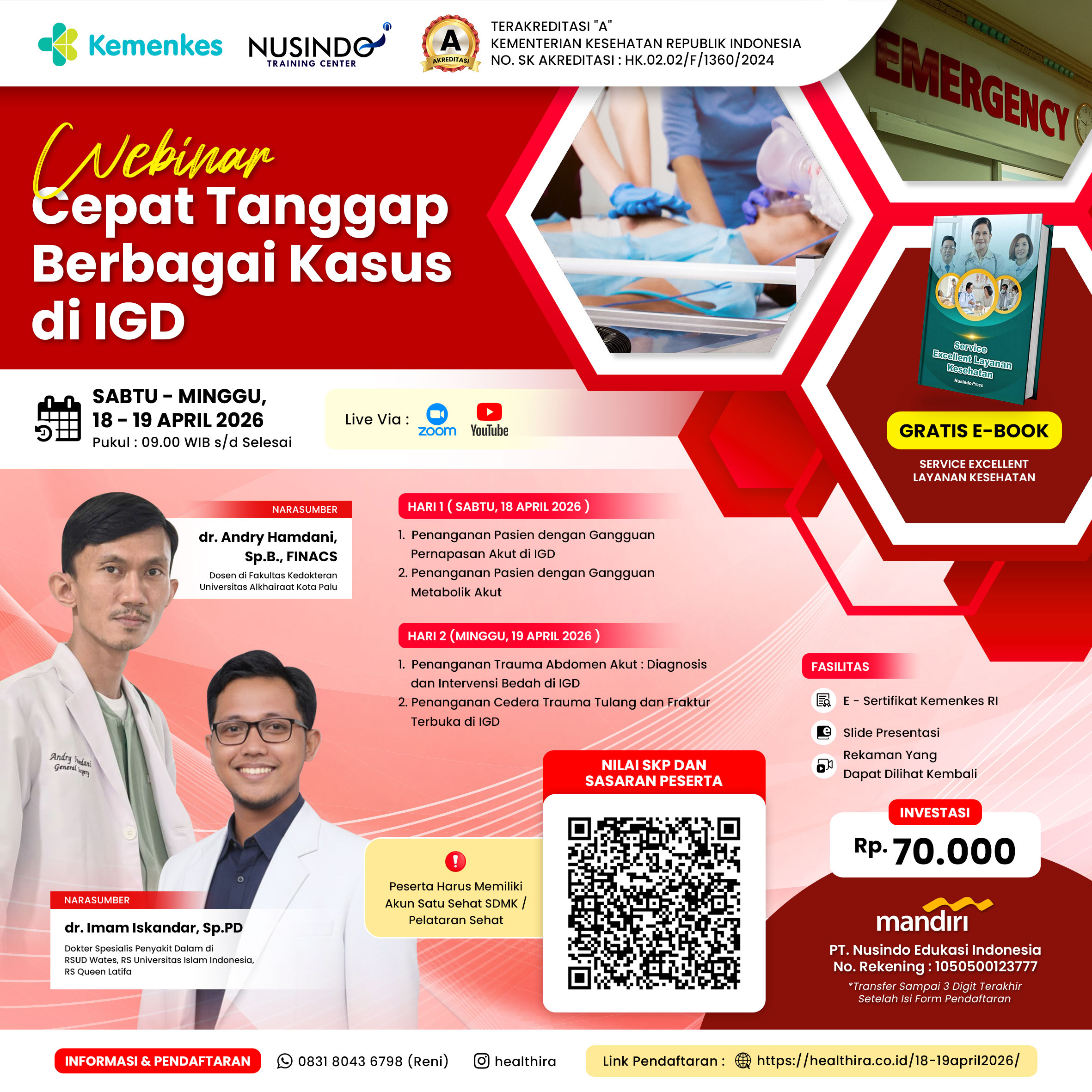 4,5 SKP : Perawat Vokasi, Perawat Vokasi Level 5 & 6, Ners, Ners Spesialis Keperawatan Gawat Darurat Kritis
